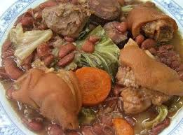 La feijoada à transmontana es uno de los platos más emblemáticos del norte de Portugal, concretamente de la región de Trás-os-Montes. Se trata de un guiso robusto, lleno de sabor y tradición, que combina alubias, embutidos y carnes con una cocción lenta que realza todos los aromas. Es ideal para los días fríos y se sirve comúnmente acompañada de arroz blanco. ¡Un plato que alimenta el alma! 🐷🌶️🍛